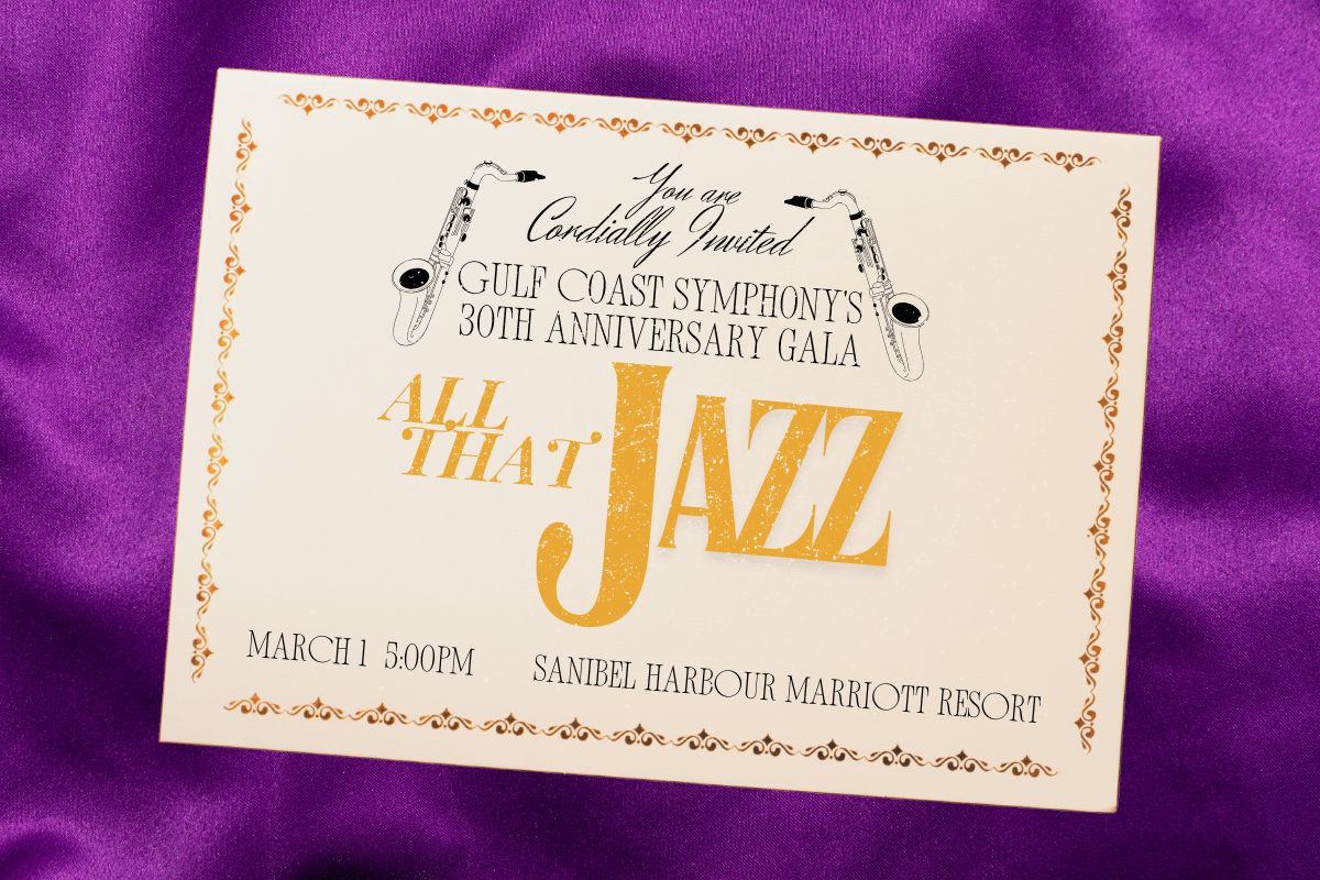 You are cordially invited to Gulf Coast Symphony’s 30th Anniversary Gala, All That Jazz, a glamorous evening inspired by the timeless elegance of a New Orleans jazz club. Join us as we celebrate three decades of music, community, and education, all while looking toward an exciting future.