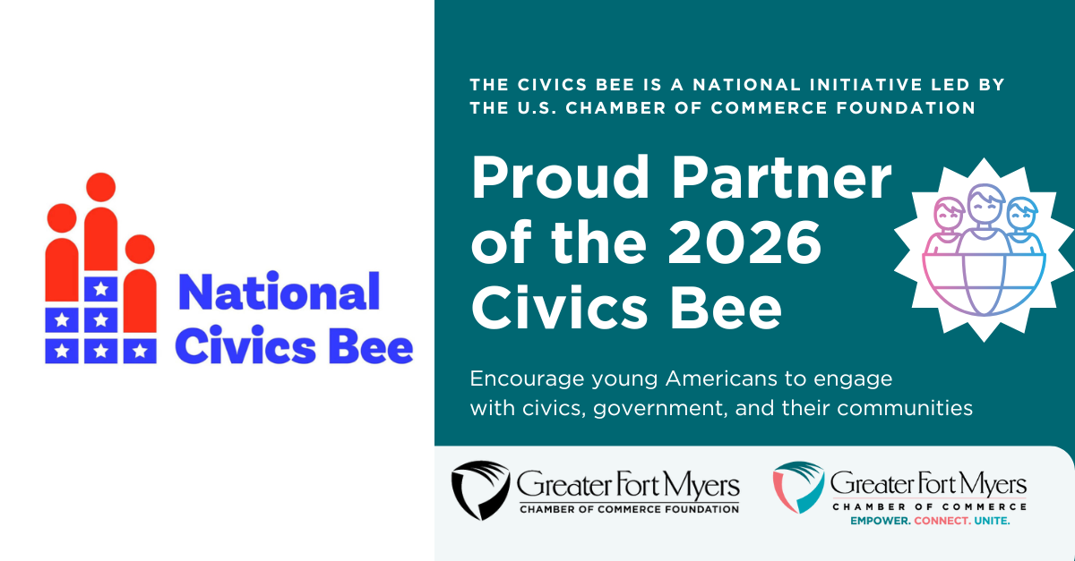 The Greater Fort Myers Chamber of Commerce is partnering with the U.S. Chamber of Commerce Foundation to host a nonpartisan civics competition that encourages young Americans to engage in civics and contribute to their communities. Participating 6th, 7th and 8th graders will flex their civics knowledge for a chance to win recognition and cash prizes.